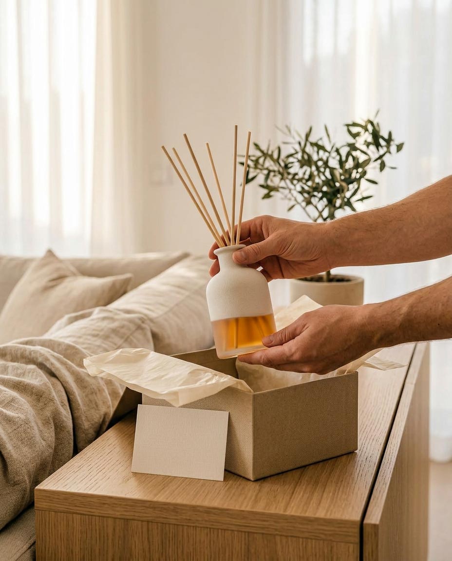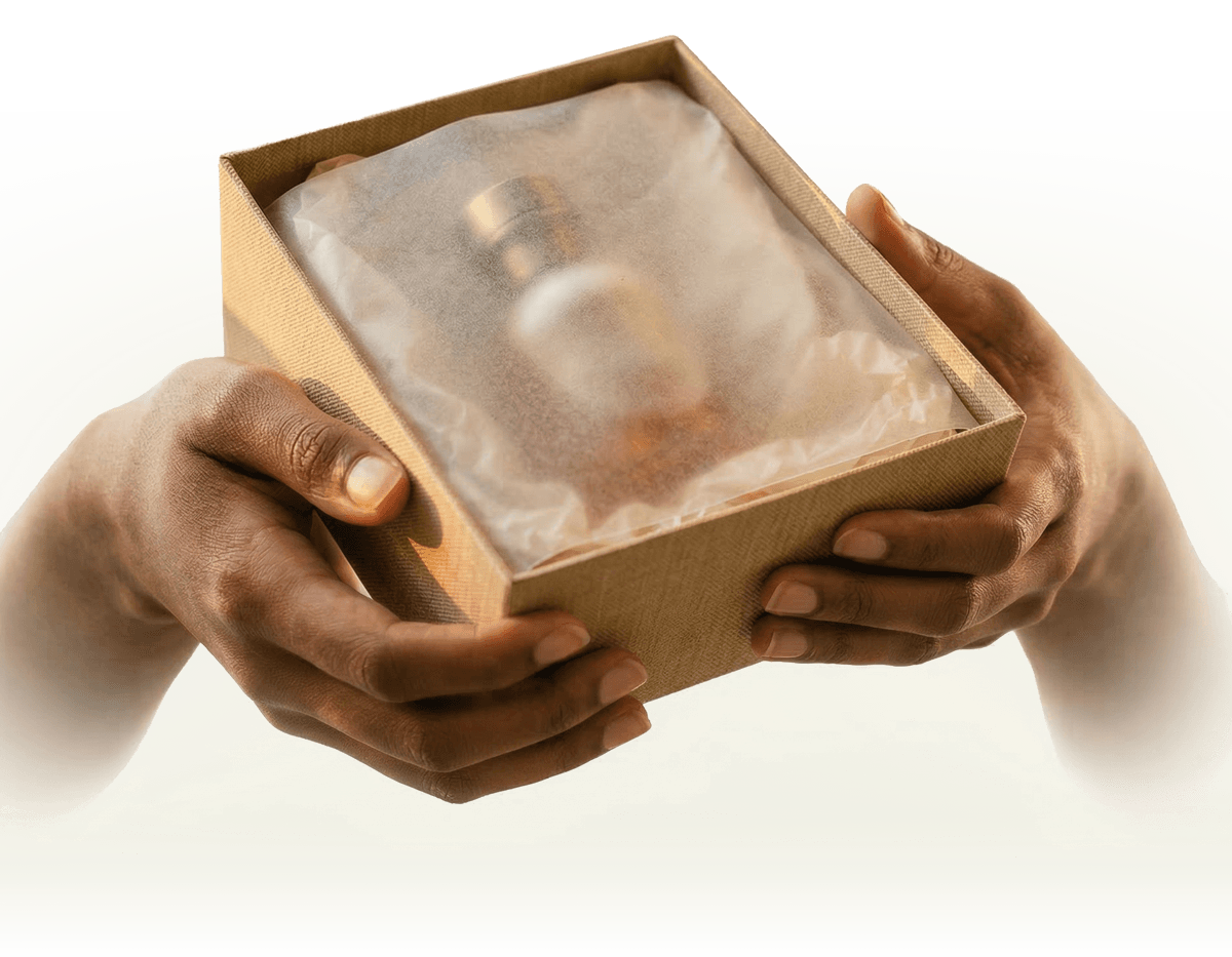 A beautifully packed gift box is delivered on checkout day. The perception shifts from purchase to service ritual.